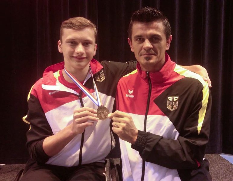 Maurice Schmidt startete im Degen mit einer starken Vorrunde in die WM des Rollstuhlfecht-Nachwuchses. Er unterlag lediglich dem späteren Sieger Emmanuele Lambertini (Italien). Topgesetzt gewann Schmidt das erste K.O. klar mit 15:1 im innerdeutschen Duell gegen Adrian Dworak. Im Viertelfinale folgte ein 15:5 gegen den Russen Trofimov. Im Halbfinale verlor Schmidt erneut gegen Lambertini und wurde im Endklassement Dritter. "Als Titelverteidiger hatte Maurice großen Druck", berichtet Cheftrainer Gavrila Spiridon. "Aber, er hat das gut gemacht."