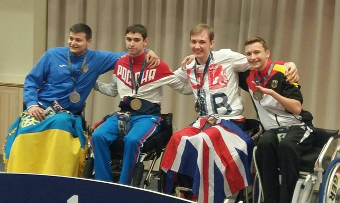 „Heute ist mein Tag“ postete der Junior-Sportler des Jahres 2016 der Sporthilfe am Morgen des zweiten Wettkampftages beim ersten Weltcup in 2017 und setzte dann deutliche Zeichen. Bereits nach der Vorrunde, die Schmidt ohne Niederlage absolvierte, war klar, heute geht noch mehr. Nichts zu lachen hatte da sein Teamkollege und Gegner im ersten Match der Direktausscheidung Martinez Budich, Rostock. Er musste sich nach diesem Gefecht mit Platz 30 begnügen. Im zweiten Durchgang hatte Schmidt mit dem Mannschafts-Paralympics-Sieger Rio 2016, Robert Citerne (FRA), einen ungemein erfahrenen und mit allen Wassern gewaschenen Gegner vor der Waffe. Erstaunlich deutlich setzte sich der Youngster gegen den Franzosen durch und traf dann auf den Italiener Matteo di Rossi. Ein heiß umkämpftes Gefecht bei dem am Ende der Böblinger mit 15:14 die Nase vorne und zumindest die Bronzemedaille sicher hatte. Maksym Mahula, UKR, beendete im Halbfinale den Siegeszug des deutschen Musketiers. Zwei Treffer trennten Schmidt schlussendlich vom Einzug ins Finale. „ Maurice ist im Moment in der Lage gegen jeden Rollstuhlfechter zu gewinnen, …“ kommentiert Bundestrainer Nachwuchs Gavrila Spiridon das gute Abschneiden seines Schützlings. „entscheidend ist lediglich die Tagesform!“ Gold gewann in Eger der Doppel-U23-Weltmeister Maxim Shaburov (RUS) vor Maksym Mahula (UKR). Gemeinsam Dritte wurden Maurice Schmidt und Piers Gilliver (GBR).
