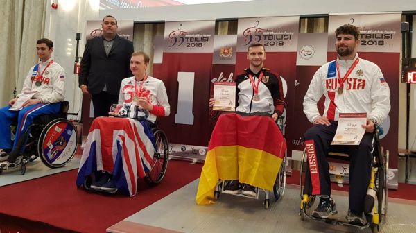 Der Weltcup ist zeitgleich der Start der Rollstuhlfechter in die Qualifikation für die Paralympics Tokyo 2020. Das Highlight aus deutscher Sicht ist der Gewinn der Bronzemedaille im Herrendegenwettbewerb der Kategorie A durch Maurice Schmidt (SV Böblingen). Dabei läuft es zunächst gar nicht optimal. Gleich dreimal unterliegt Schmidt den Gegnern, wenn auch nur knapp, in der Vorrunde und landet damit im Ranking für die Direktausscheidung bloß im Mittelfeld. Sein erster Gegner im KO ist Damien Tokatlian (FRA), einer der erfahrensten Fechter im Teilnehmerfeld, den er mit 15:8 niederringt. Nach Siegen gegen Norbert Calka (POL), den Sechste der Europameisterschaften 2018 in Terni (15:11) und den EM-Dritten Mikhail Karpov (RUS; 15:14) zieht der Württemberger in das Finale der besten Acht ein. Betti Matteo (ITA), Florett-Spezialist und Florett-Vize-Weltmeister, kann dem deutschen Degenspezialisten nicht viel entgegen setzen, er unterliegt 8:15. Schmidt zieht damit ins Semifinale ein. Degen-Weltmeister Maxim Shaburov (RUS) gewann 2018 bereits die U23-WM und die EM im Degen. Der amtierende Europameister will auch in Tbilisi mehr. Schmidt verliert mit 7:15 und gewinnt Bronze.