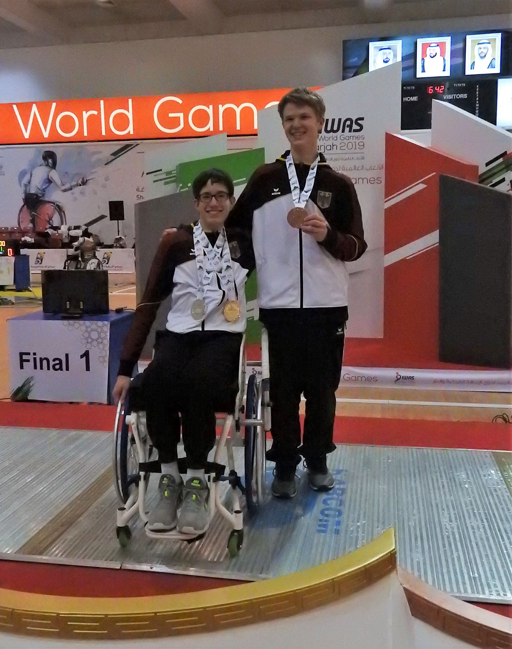 Nach seinem Titelgewinn im Florett sichert sich Felix Schrader (SV 1845 Esslingen) mit der Silbermedaille im Degen die zweite WM-Medaille. Clemens Cursiefen (Fechtklub Köln) wird Fünfter.